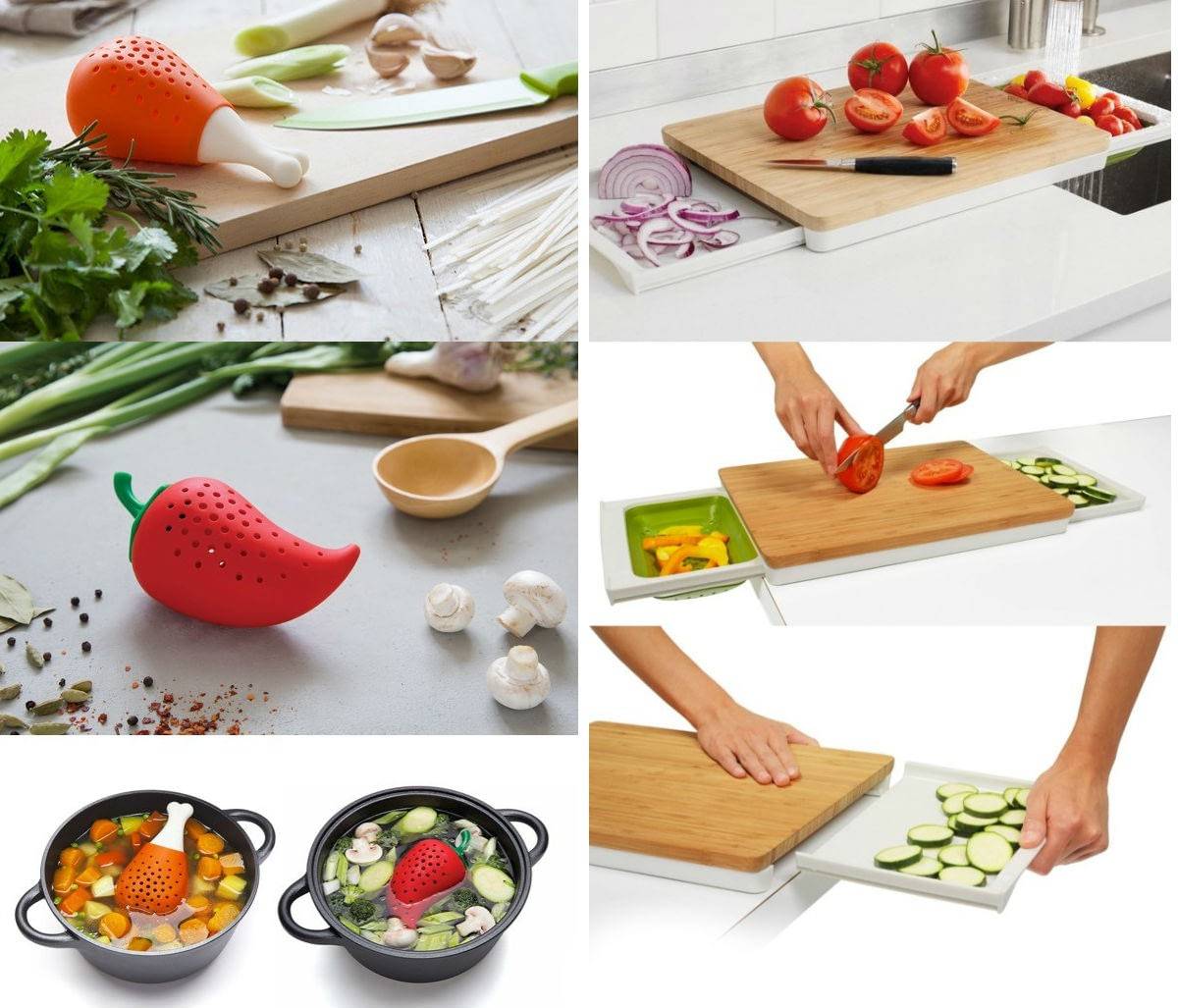 Забавные кухонные гаджеты поражают не искусственным интеллектом, а креативным мышлением своих создателей. О симпатичных диффузорах для супа упоминалось выше. Теперь не нужно измельчать пряные травы и специи, чтобы положить их в суп, что экономит время и позволяет сохранить максимум полезных веществ.