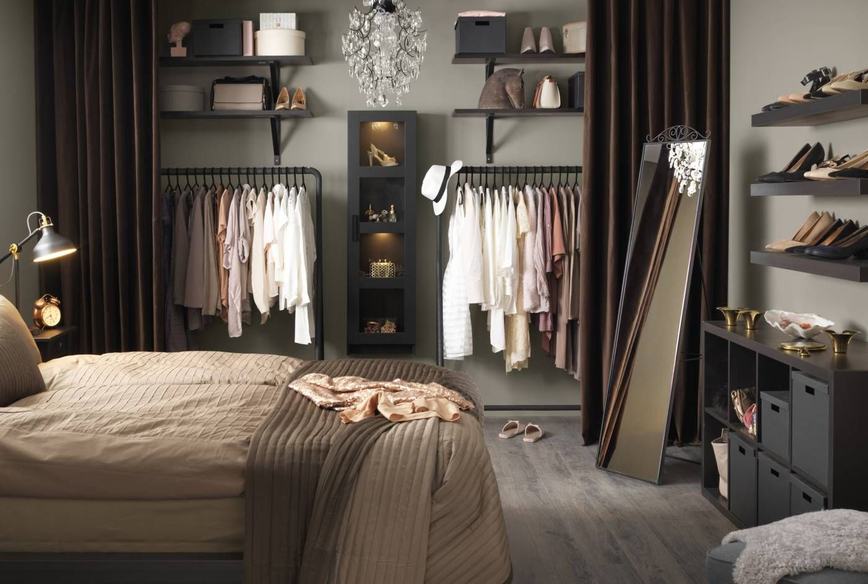 Для организации гардеробной в спальне можно использовать различные варианты.