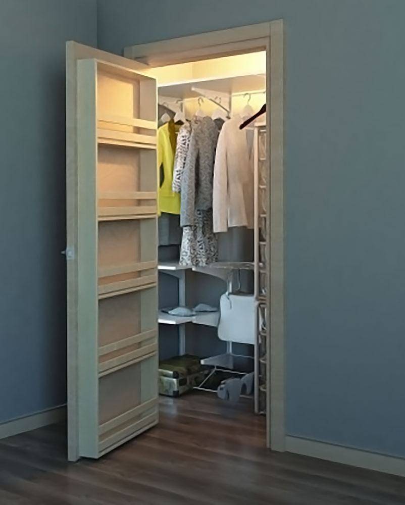 На поверхности двери можно повесить крючки для ремней, тканевые органайзеры для аксессуаров и обуви, зеркало.