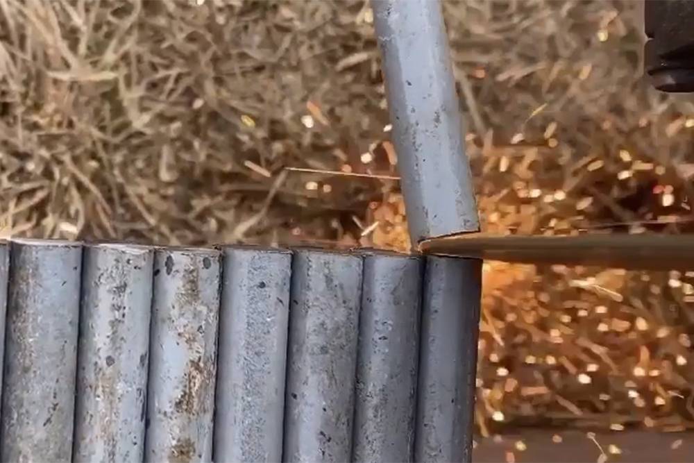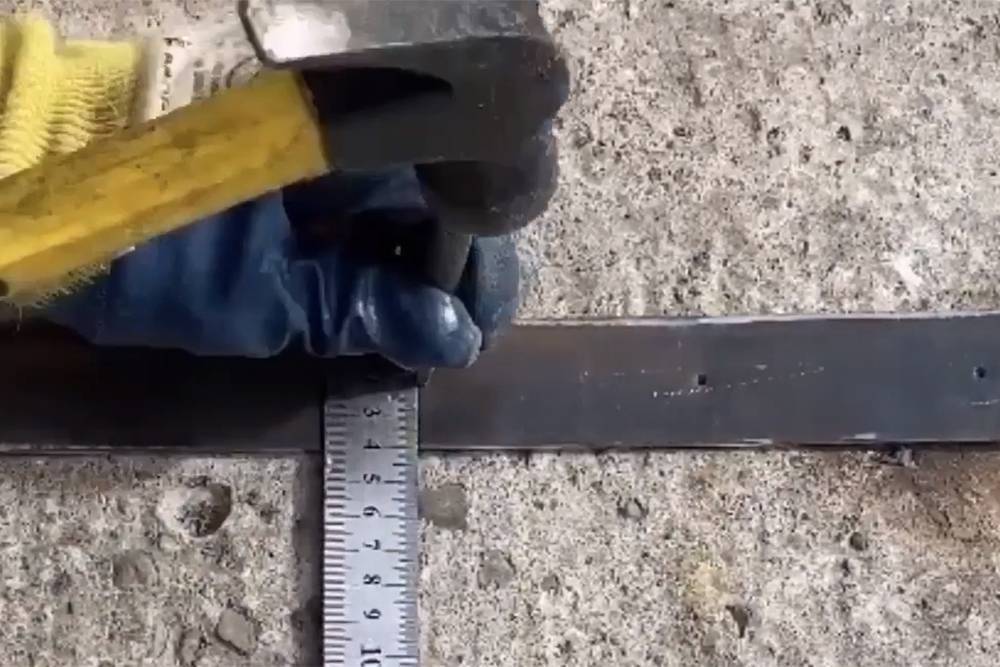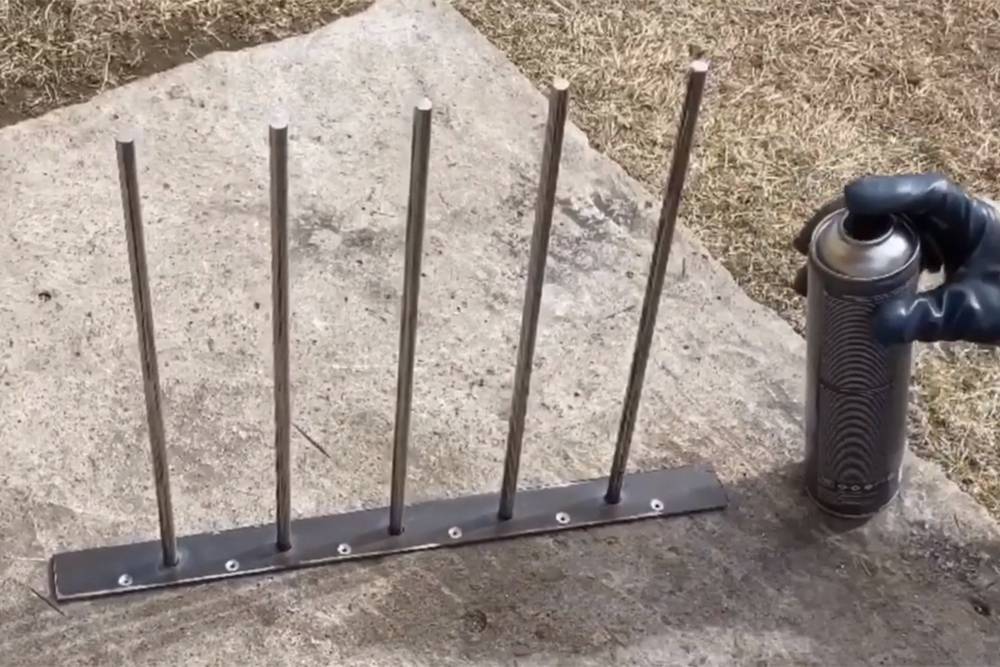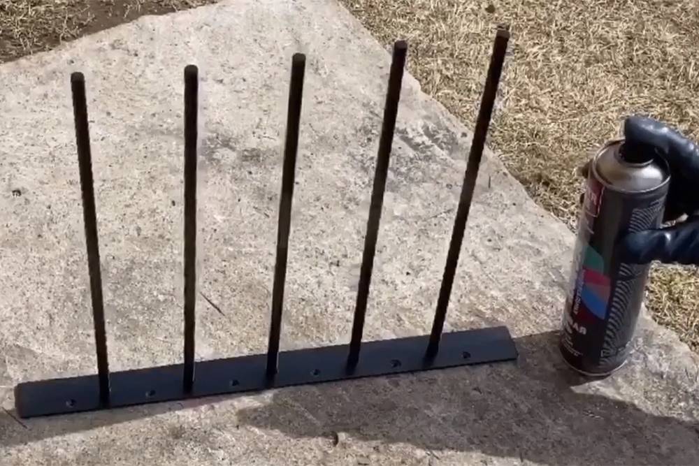 В полосе разметил отверстия через каждые 80 мм. Затем нарезал прутки длиной 350 мм, отшлифовал их и вставил в эти отверстия.