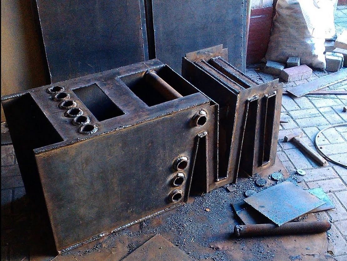 Собирается дровяной котел своими руками с корпуса, затем оборудуется деталями и обшивкой. Перед сваркой с деталей снимается фаска, после швы зачищаются от шлака и шлифуются. Швы осмотреть, проверить их герметичность. При выявлении пропусков, проварить заново.
