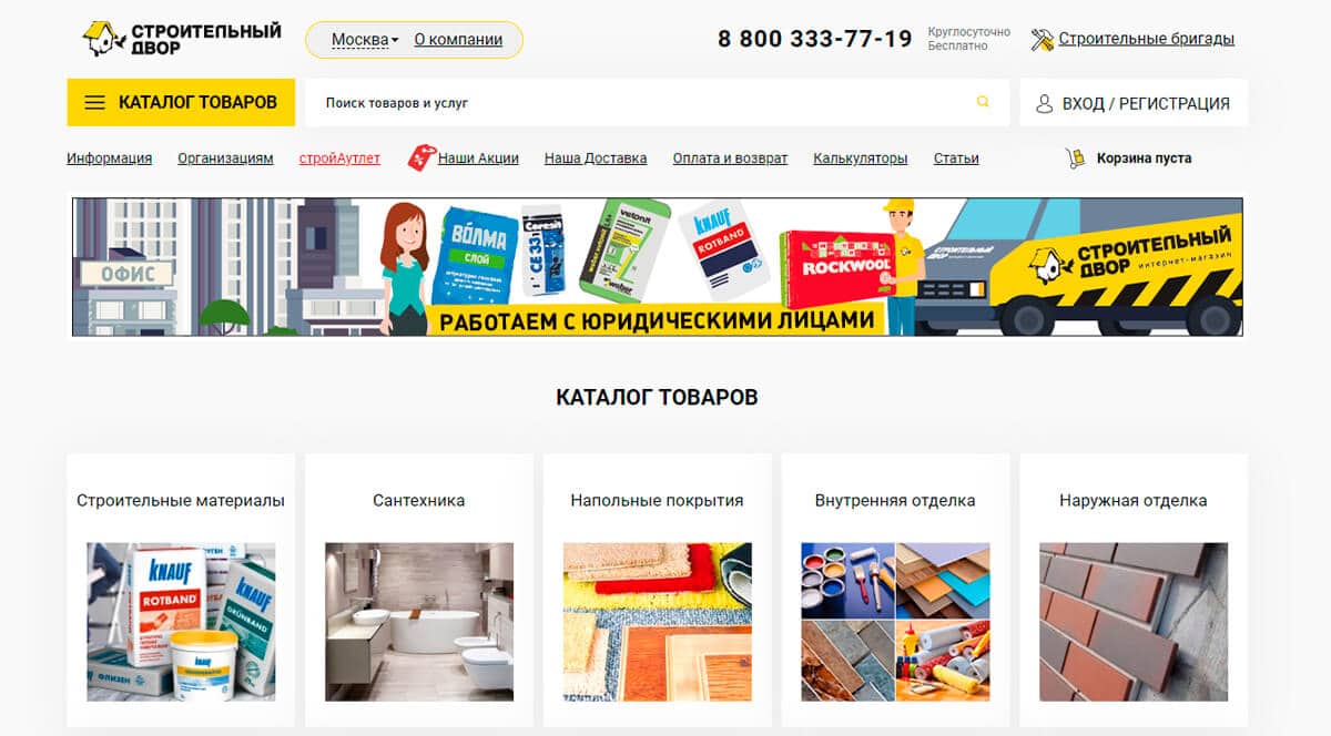 В 1993 было основана компания «Строительный двор», а в 2007 году руководство создало сайт sdvor.com. Строительный двор является одним из самых дешевых магазинов строительных инструментов. Ассортимент насчитывает более 20 000 наименований. Огромным преимуществом является возможность сдать излишки материалов.