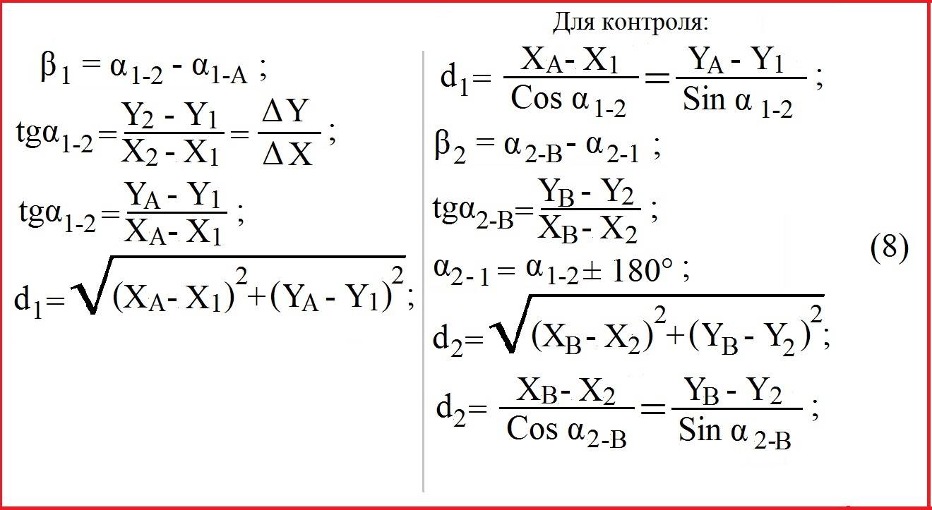 _______ Для подготовки геодезических данных для вынесения проектных точек А и В необходимо вычислить углы β1 и β2 и расстояния d1 и d2.