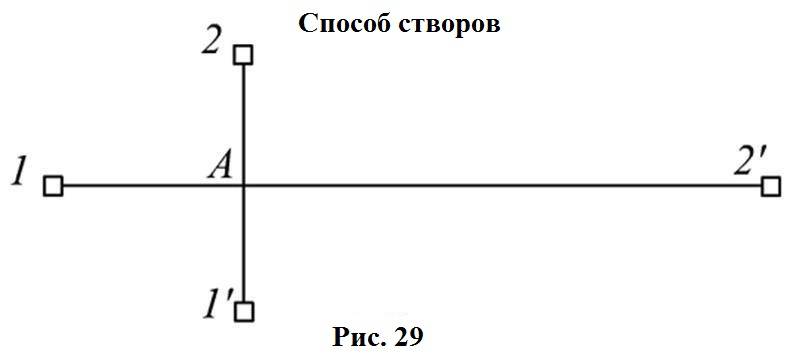 _______ Положение точки определяется пересечением двух створов (осей), закрепленных на местности.