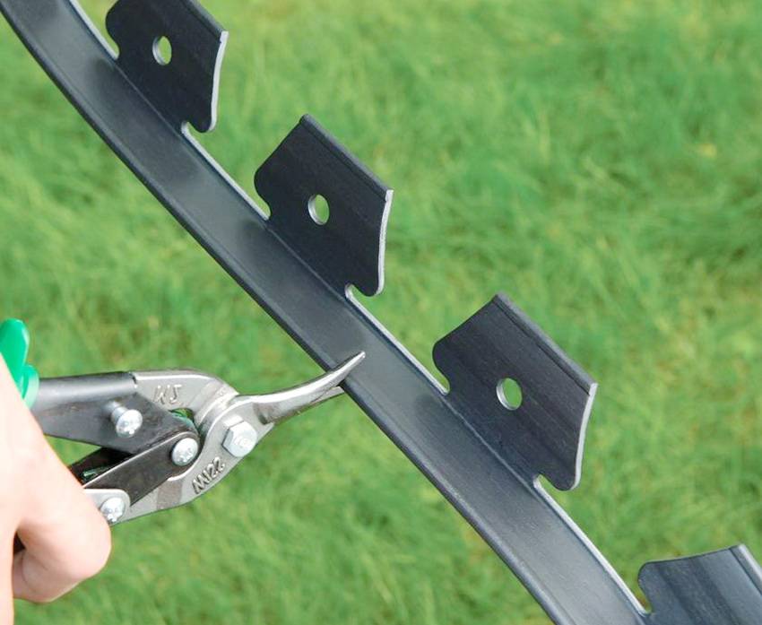 Помимо пластиковых изделий, в продаже имеются аналоги из стали. Конструкцию таких бордюров защищают оцинковкой, значительно продлевая этой мерой срок ее эксплуатации. Кроме того, в защитных целях он покрывается слоем полимерного напыления. Металлические бордюры не ржавеют, имеют малый вес и большую прочность. Они не загнивают и не плесневеют. Стальные ленты служат долгий срок. Их удобно собирать и монтировать. Есть возможность наращивания по высоте и в длину. При этом красиво выглядят и считаются безопасными. Бордюр из стали с полимерным напылением – отличное решение для оборудования теплицы, покрытой пленкой.