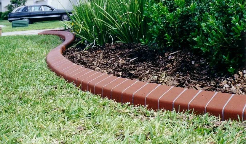Бордюр из кирпича идеально сочетается с такими же стенами или тротуарами, а также с любыми деревьями, кустарниками или цветами