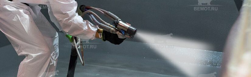 Далее можно приступать к напылению материала. Наиболее часто используемым способом нанесения полимера, который применяется в 95% случаев, является напыление с помощью специального оборудования. Операция проводится в несколько этапов: