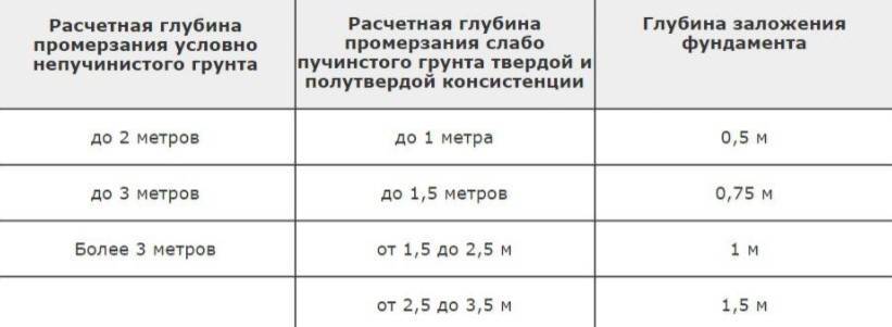 Глубина заложения фундамента и тип грунта