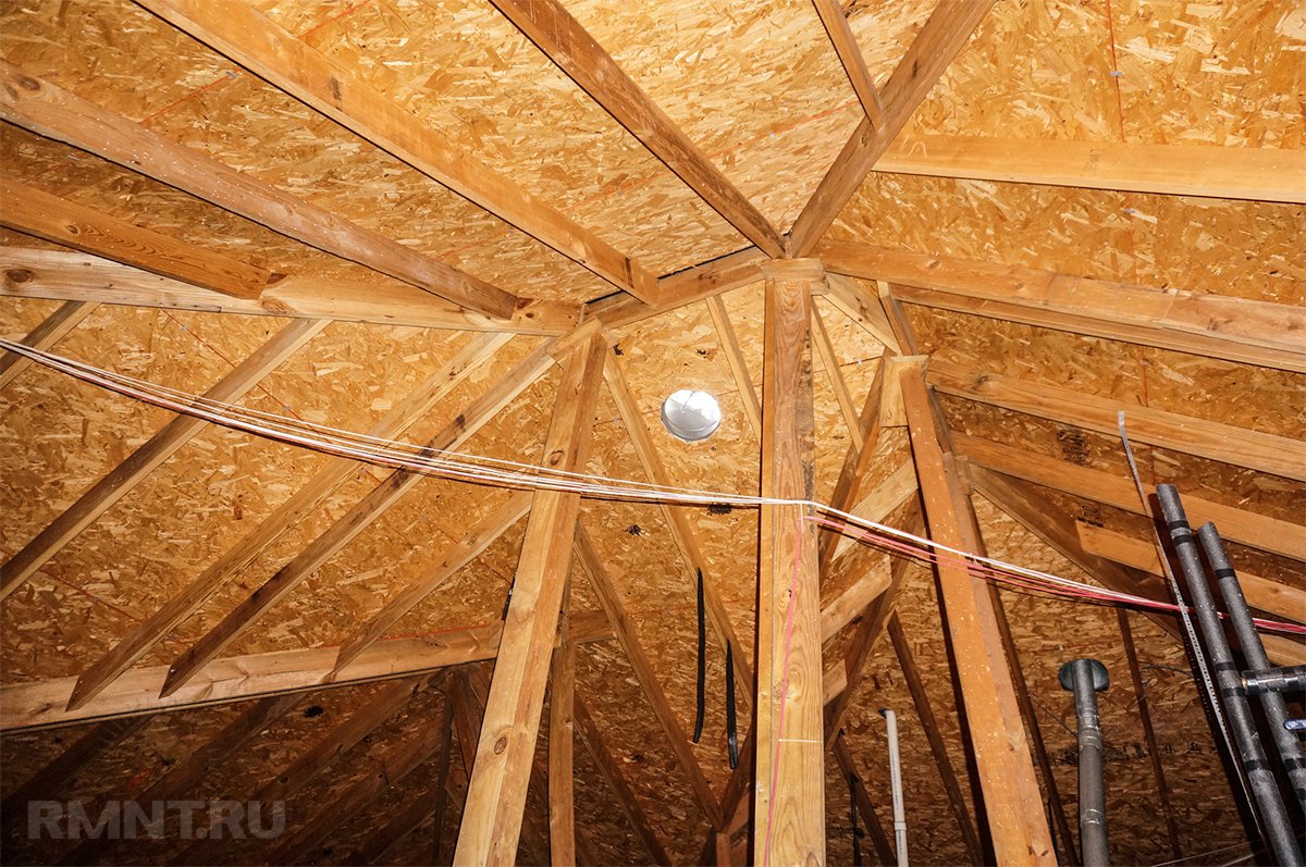 Сверху крепится контробрешетка, после этого – обрешетка, а затем уже устанавливают собственно кровельное покрытие. Водяные пары выводятся из подкровельного пространства посредством специальных ходов под коньком и на скатах.