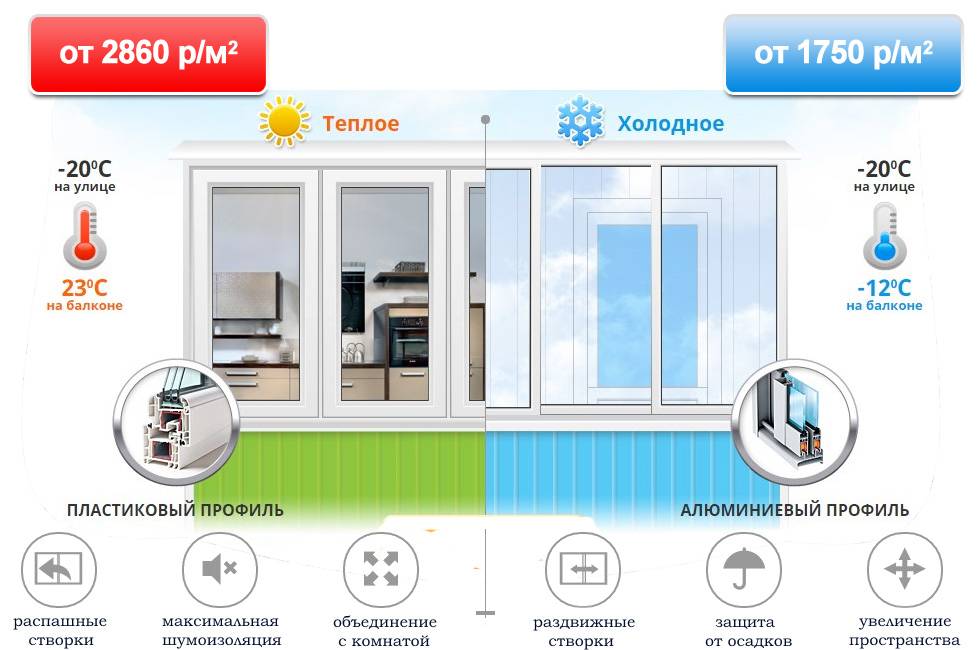 Стоимость каждого из видов отличается примерно на 30-50% в зависимости от выбранных материалов и комплектующих. Естественно, что чем выше теплоизоляцию сможет обеспечить остекление, тем дороже оно обойдется.
