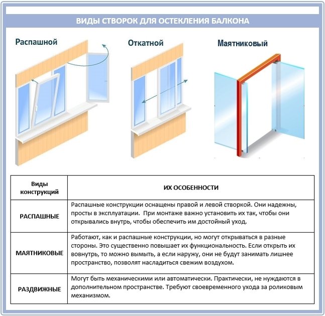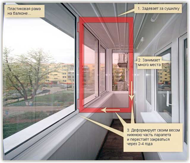 - для свободного открывания створки внутрь балкона нужно много места;
