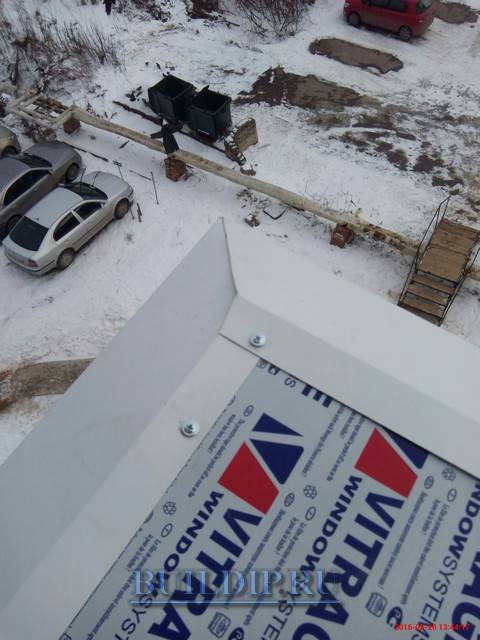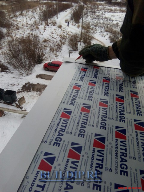 Подгонка бокового отлива закончена, с другой стороны балкона она производится аналогично.