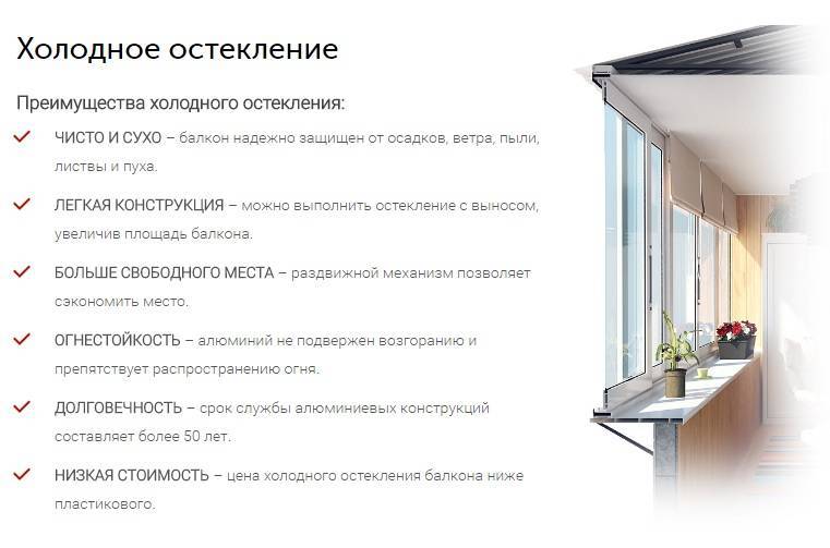 Холодное остекление, профиль которого алюминиевый, является наиболее практичным решением, так как не требует сложной подготовки балкона, обработки и ухода, как деревянный аналог.