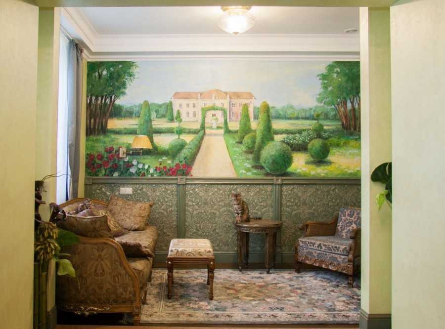 Чтобы сделать интерьер комнаты с художественной росписью еще интересней, можно прибегнуть к некоторым дизайнерским хитростям.