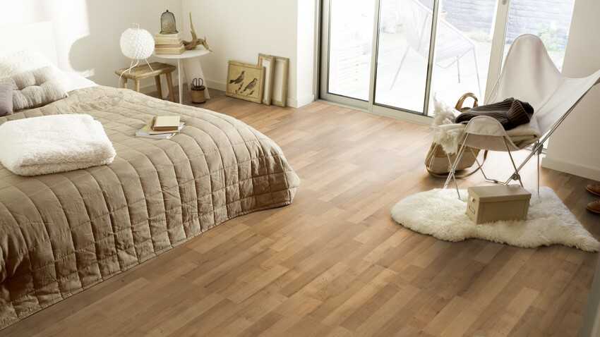 Паркет прекрасно сочетается с любым вариантом отделки стен в спальне, а разнообразие цветовых решений позволит подобрать к нему любую мебель.