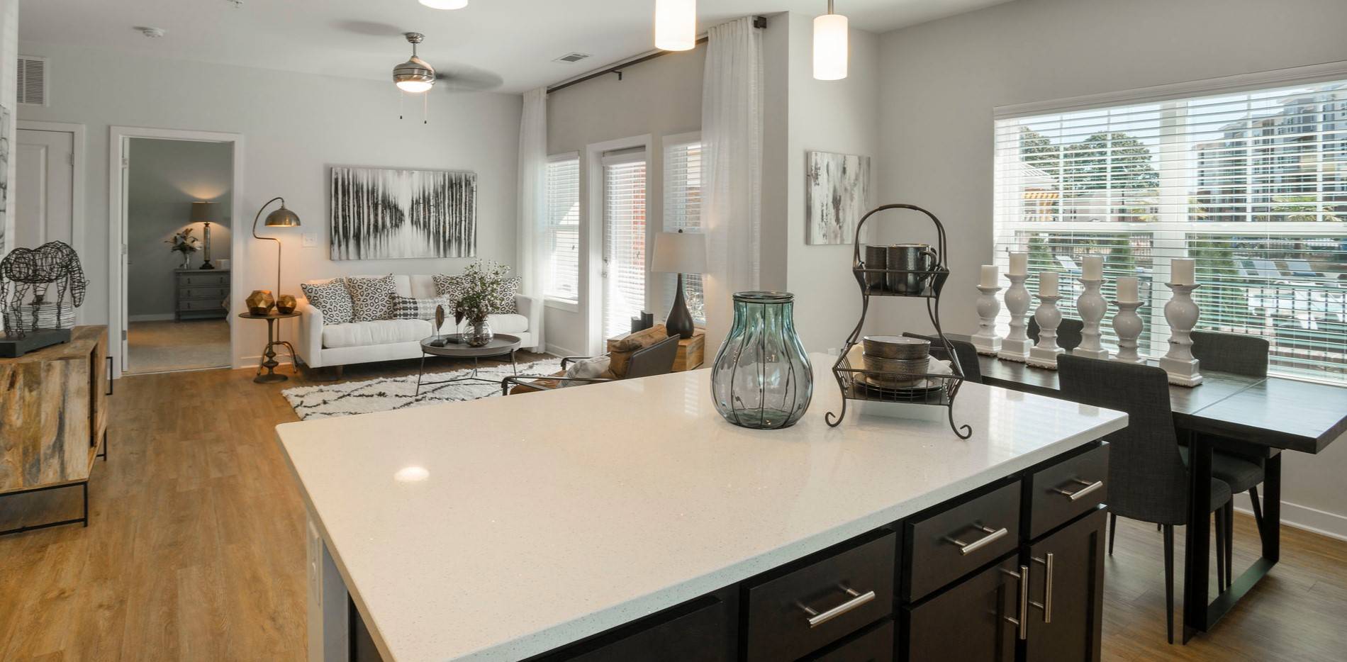 Как правило, пространство в американской кухне разделяется при помощи «острова», который позволяет создать множество вариантов оформления помещения. Так, «остров» поможет разграничить зону кухни от зоны столовой или гостиной. Остров можно использовать в качестве варочной поверхности или зоны принятия пищи. Его можно оформить и как барную стойку.