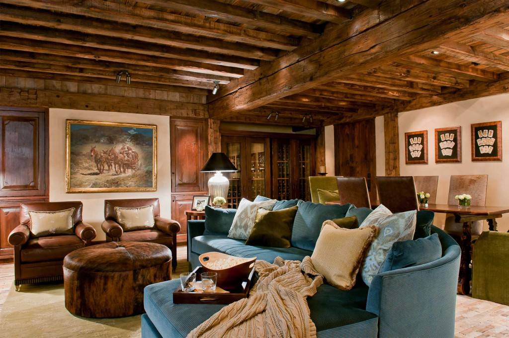 Это преобладание дерева не только в элементах мебели, но также – в отделке комнат. Здесь присутствуют грубо отделанные доски и брусья. Конечно, современные пропитки и лаки позволят сделать древесину более долговечной, при этом сохранив их естественный вид.