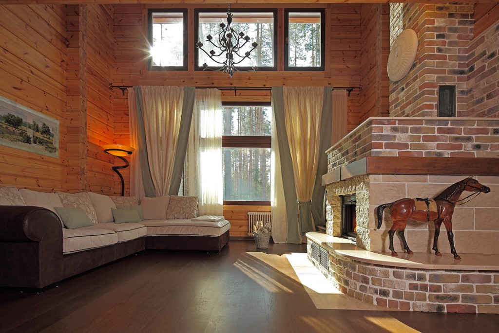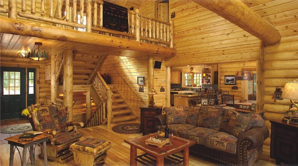Если вы еще не определились, каким хотите видеть интерьер вашего деревянного дома, стоит посмотреть фотографии готовых интерьеров гостиных, кухонь и спален.