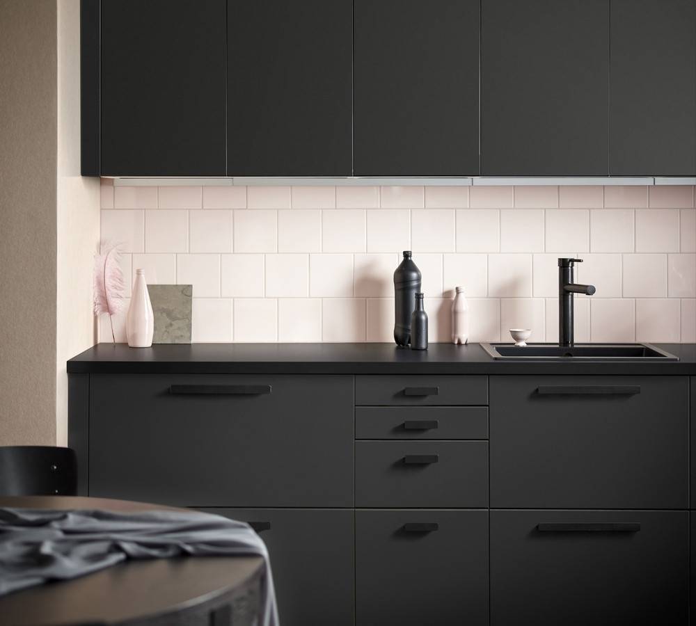 Невероятно стильно и немного сдержанно выглядят черные кухонные гарнитуры Икеа, контрастирующие со светлой отделкой стен или других предметов. Такое решение подойдет для современного стиля, в основном благодаря лаконичности.