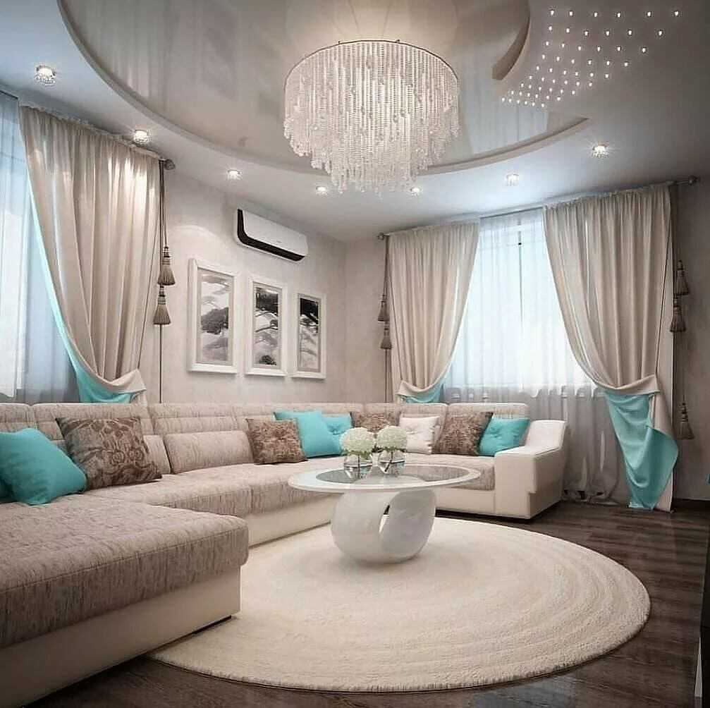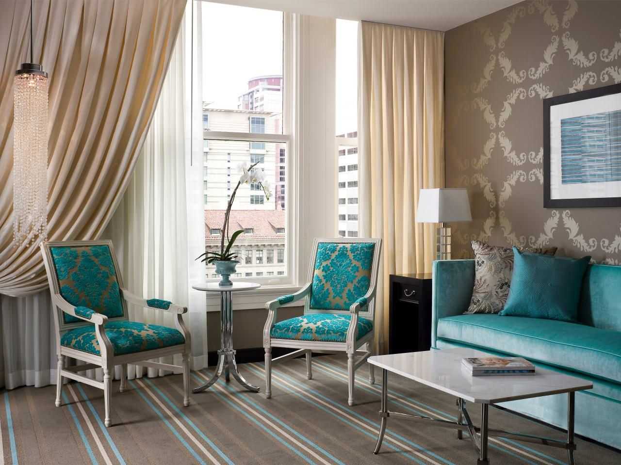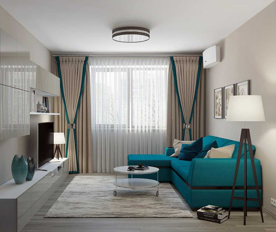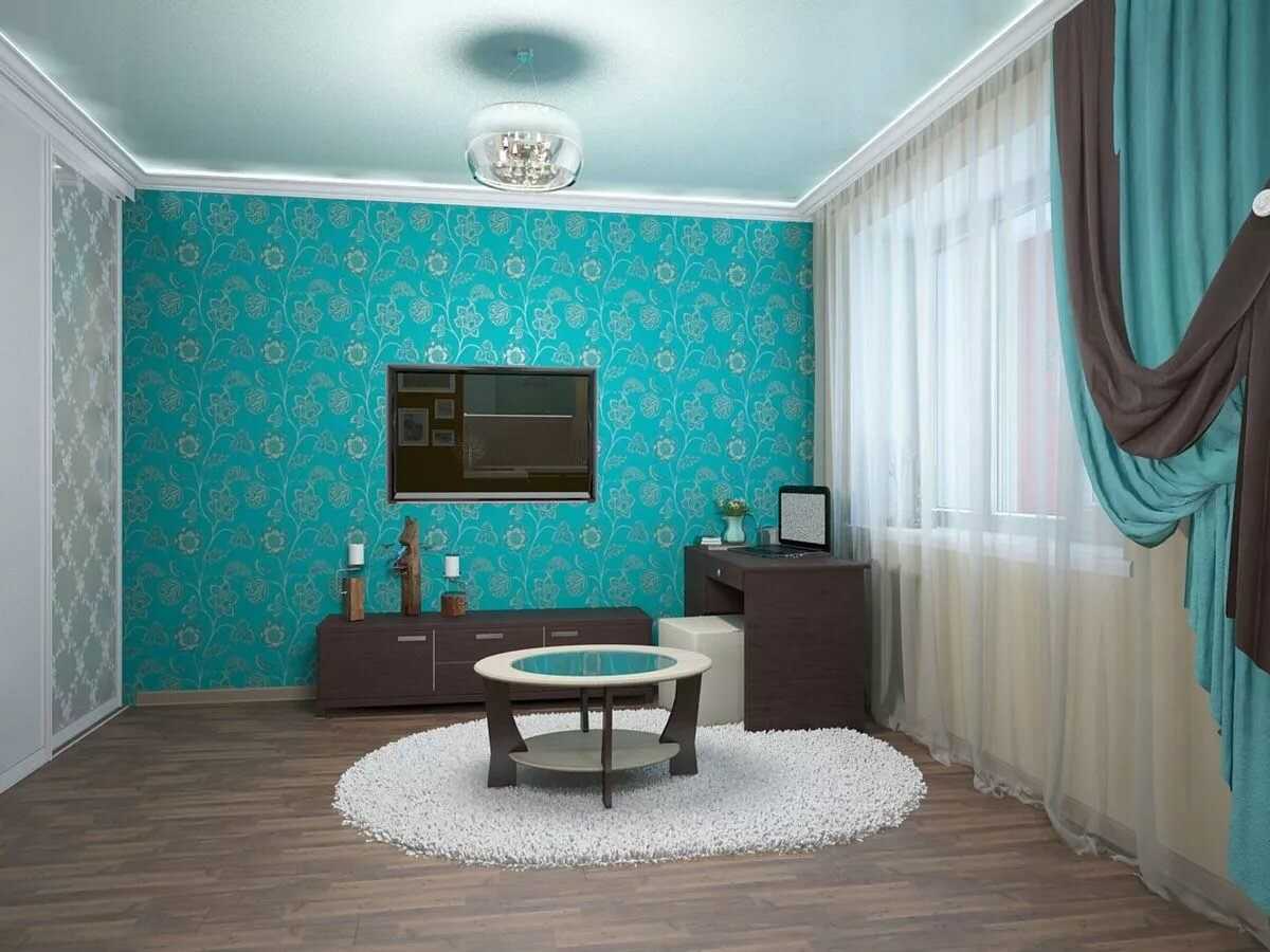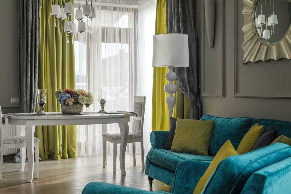 Шторы и прочие аксессуары в гостиную бирюзового цвета