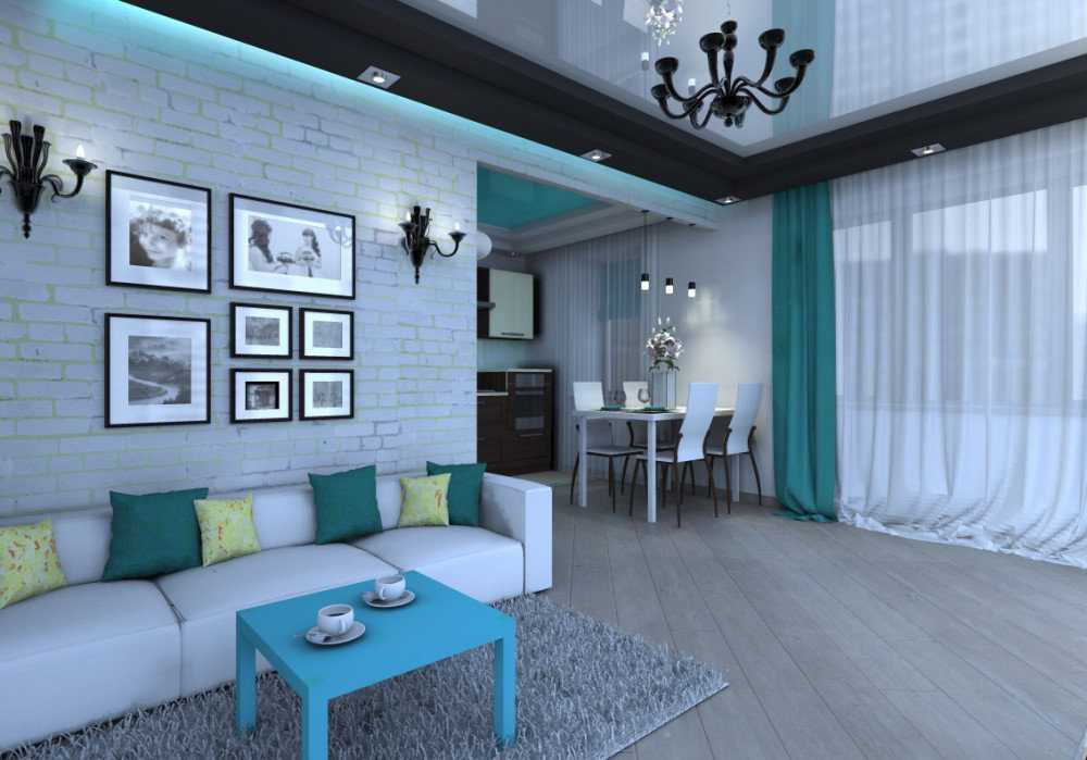 Интересный и насыщенный образ имеют комнаты, выдержанные в черных и бирюзовых тонах. Данное смелое дизайнерское решение отлично впишется в современную стилистику.