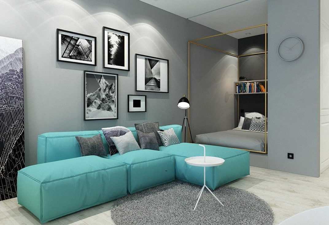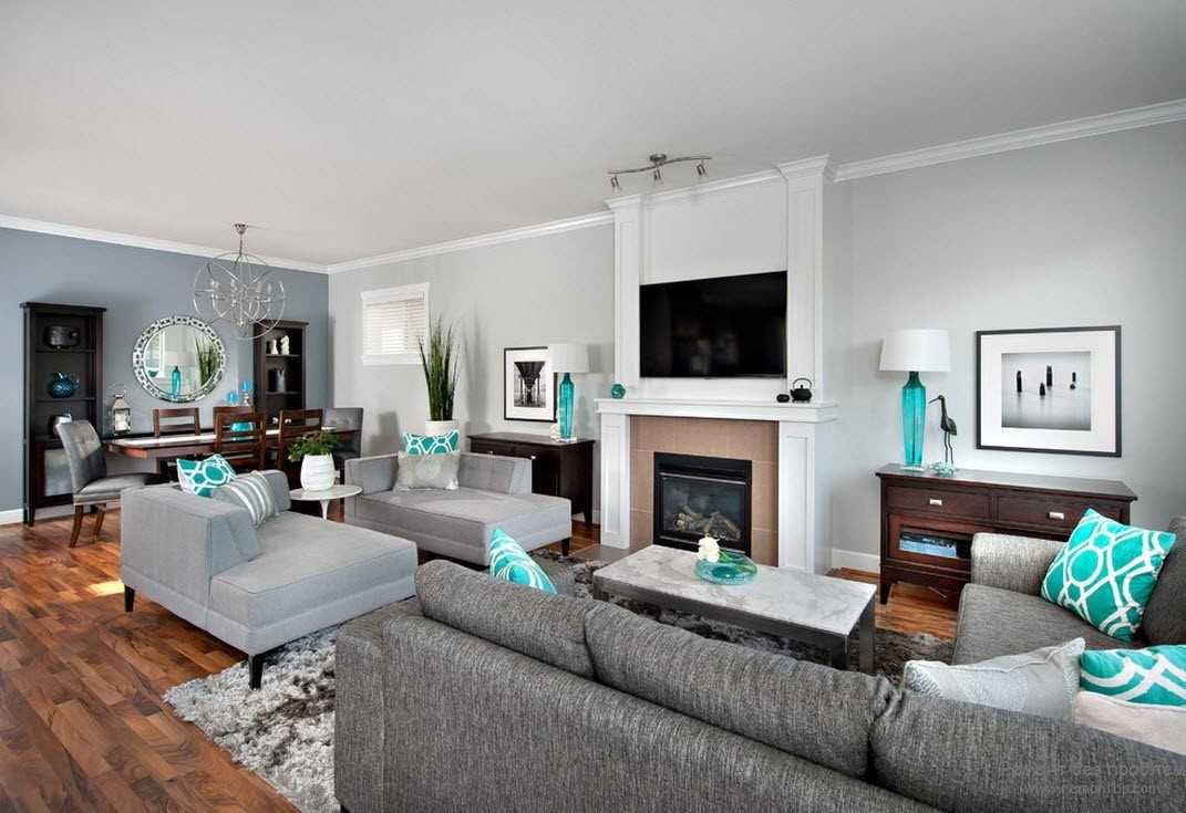 Классическое соединение голубого + серый уходит корнями в дворцовые интерьеры стиля барокко. Такая тенденция не выходит из моды, поскольку все созданное в прошлом остается с нами на генетическим уровне и включает необходимые струны души. В результате нет взрыва красок, но есть благородство линий и сдержанная фешенебельность. Бирюзовая обивка мебели, декоративные подушки расставляют необходимые акценты и добавляет веселые нотки.