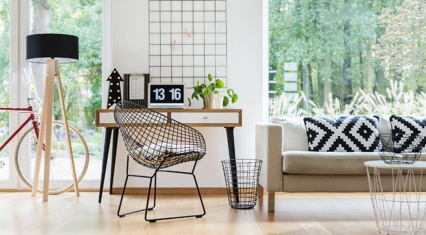 В идеале декор в скандинавском стиле должен не просто радовать глаз и создавать уют, но и быть функциональным. Задача непростая, но решаемая. Необычной формы стол, диковинные источники освещения, оригинальные диванные подушки, плетёные коврики – красиво и, одновременно, практично!
