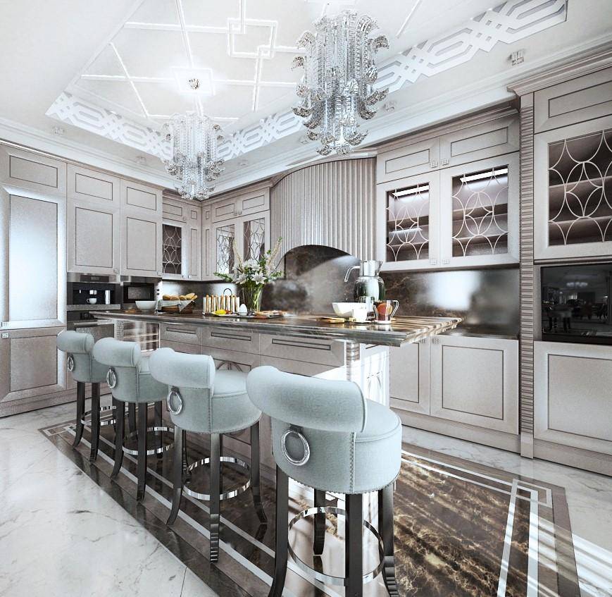Какие фасады интерьера кухни в стиле Неоклассика?