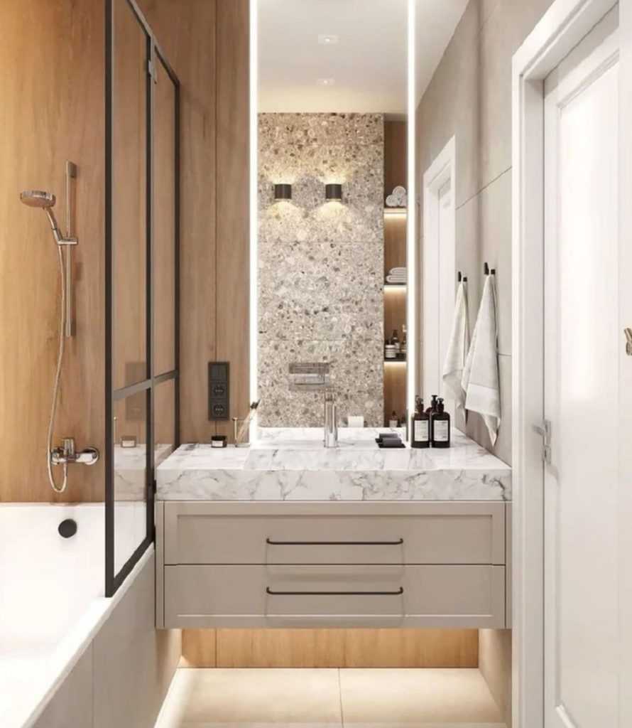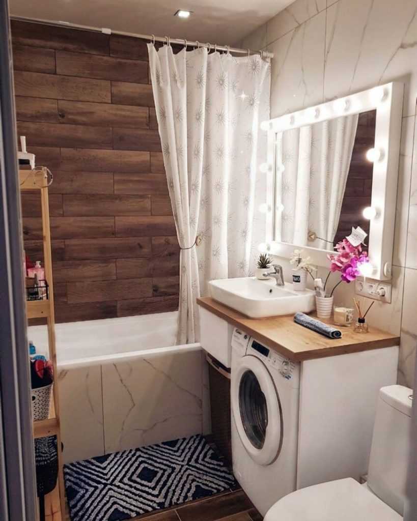 Шкаф или корзина для белья зачастую не находят места в таком маленьком помещении. Поэтому вам приходится выбирать, чему отдать предпочтение. Главная задача – это разместить все компактно, функционально и красиво.