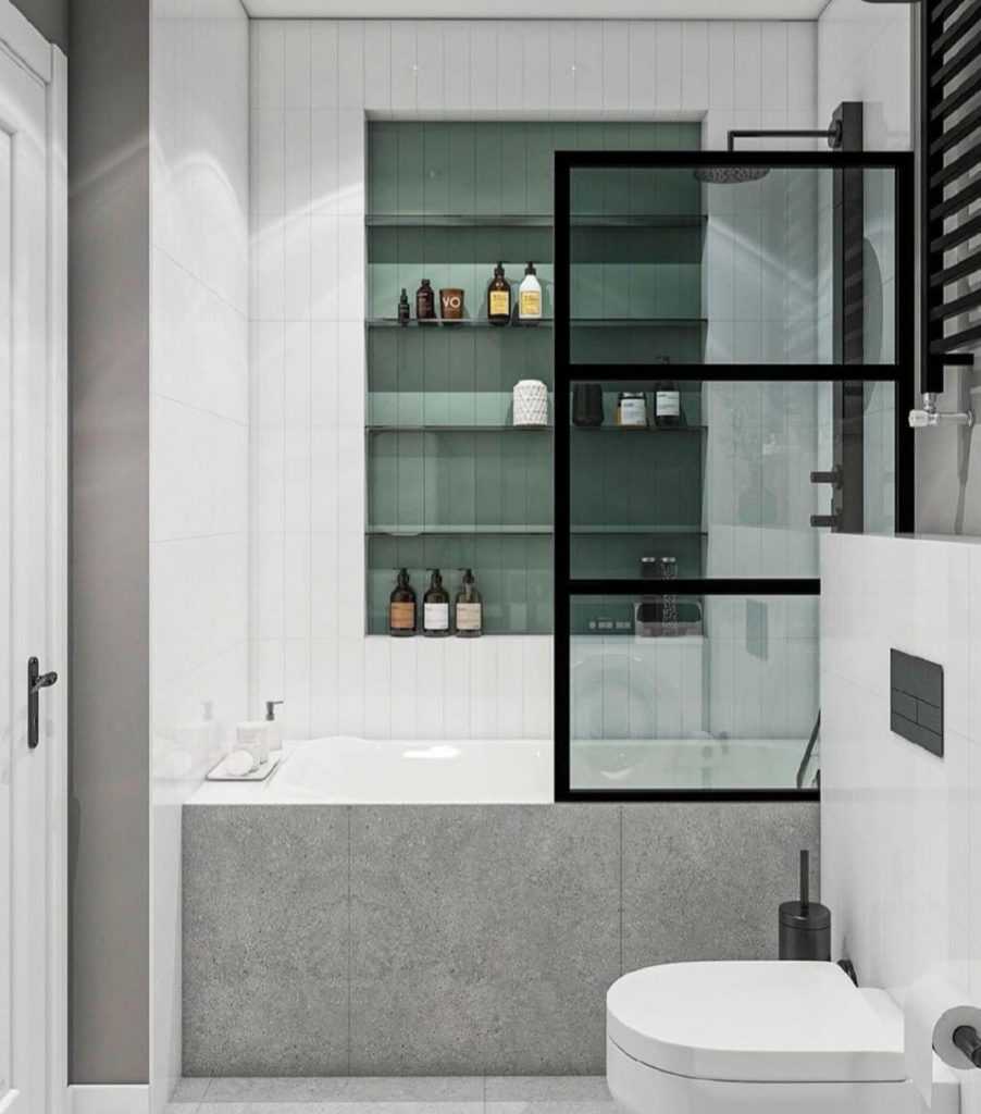 Вместе с тем зелёная цветовая гамма хорошо смотрится в маленькой ванной.