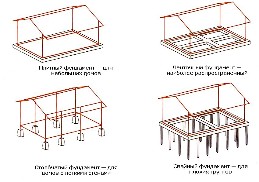 Чтобы построить дом недорого, можно задействовать такие варианты фундамента: