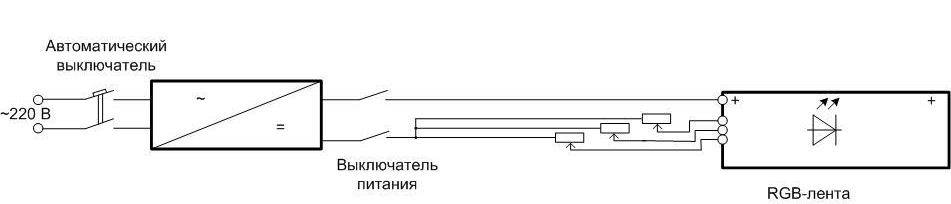 Схема подключения одной светодиодной ленты к 220 В