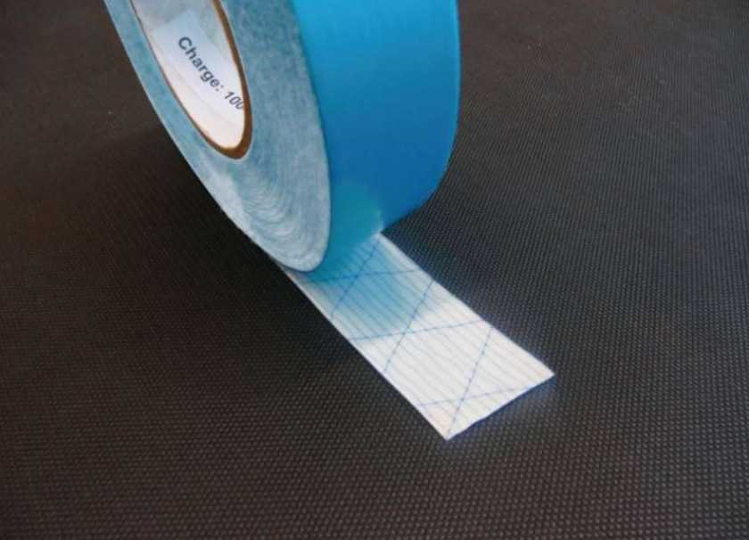 - двухсторонний скотч. Он используется для фиксации полос материала на опорных конструкциях (стенах, мауэрлатах и прочих элементах стропильной системы), а также удерживает края пленки, уложенной внахлест;