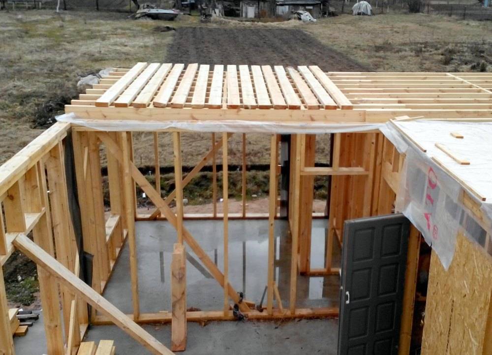 Как итог, элементы жесткости будут образовывать прямоугольный треугольник с угловой стойкой. В местах установки оконных и дверных коробов, укосину будет лучше сделать так, чтобы она была направлена от углов к проемам, и тогда вы сможете дополнительно закрепить элементы. Для плотного прилегания следует врезать в элементы каркаса укосины, предварительно выпилив пазы требуемой ширины и глубины. При правильно смонтированных элементах прочности все будет прилегать к каркасу плотно и не помешает выполнению обшивки.