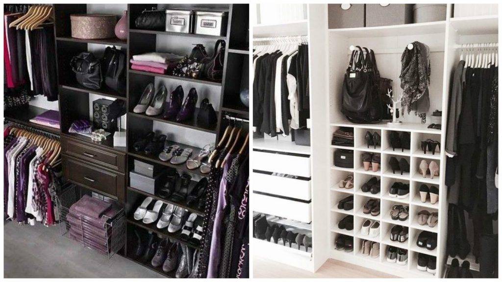В глубоком шкафу практично использовать дверцу шкафа, куда можно прикрепить крючки или держатели и вешать сумки, шарфики и галстуки. Хранить обувь, кожаные и замшевые сумки нужно вдали от солнечных лучей, батарей и других отопительных приборов!
