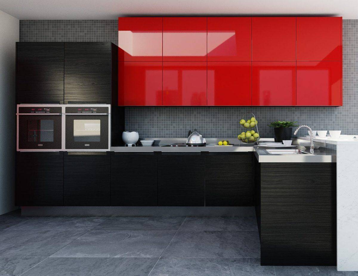 Чёрный с красным — смелый вариант. Оба цвета экстравагантные, а их смешение только усиливает это ощущение. Кухня при этом выглядит ярко и неординарно.