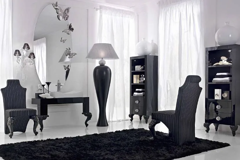 Исключение делается, если в черно-белой схеме используются оригинальные предметы меблировки. Акцентом может стать необычная форма, причем не обязательно вычурная, как у изделий в восточном стиле. Как вариант, можно остановить выбор на предметах со светлой отделкой.