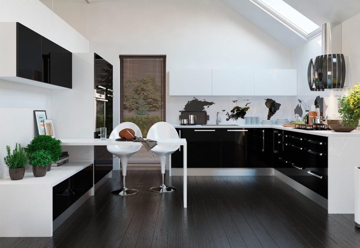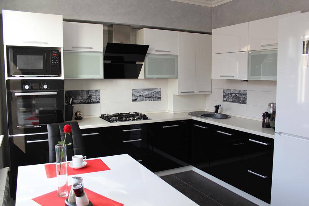 Чёрный и белый — классика, проверенная временем. Такая кухня смотрится стильно и необычно. За счёт резкого контраста из двух противоположных цветов рождается ощущение строгости и лаконичности. Белый цвет добавит пространства, а чёрный усилит ощущение сдержанности.