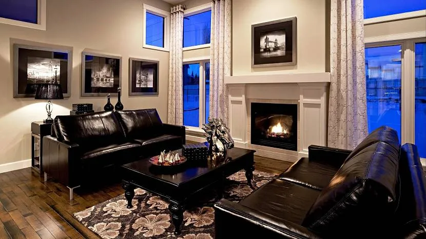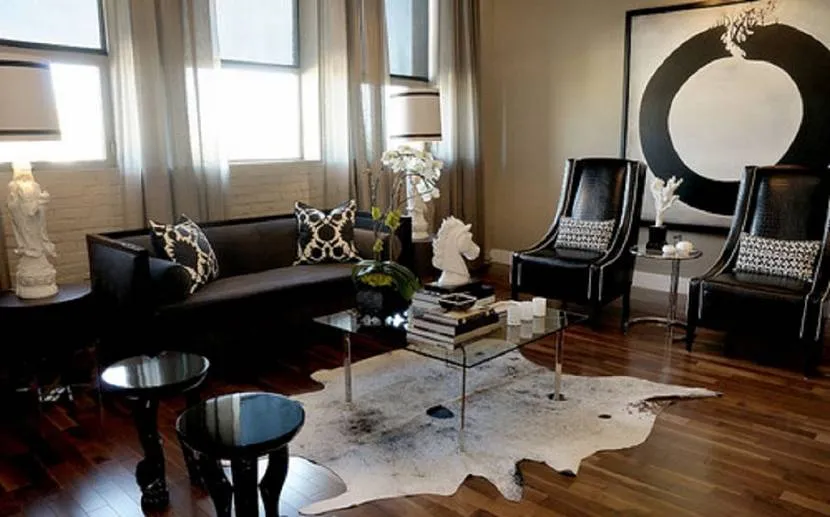 Для черной мебели вопрос выбора цвета пола стратегически важен — чем светлее он будет (вплоть до чисто белого), тем более яркий вид будет у комнаты. Здесь действует тот же принцип, что и для белой мебели на черном полу — контрастное сочетание увеличивает впечатление.