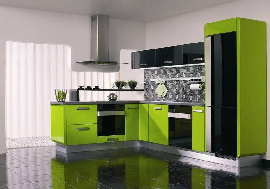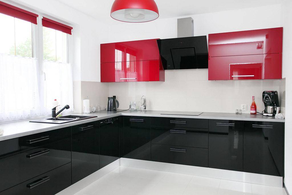 Красивая, но очень активная комбинация. Такой дизайн крайне редко используют для интерьеров жилых домов. Чёрно-красный обязательно стоит разбавлять светлым — белым, молочным, серебристо-серым. Стильно в интерьере кухни будут смотреться металлические и стеклянные элементы.