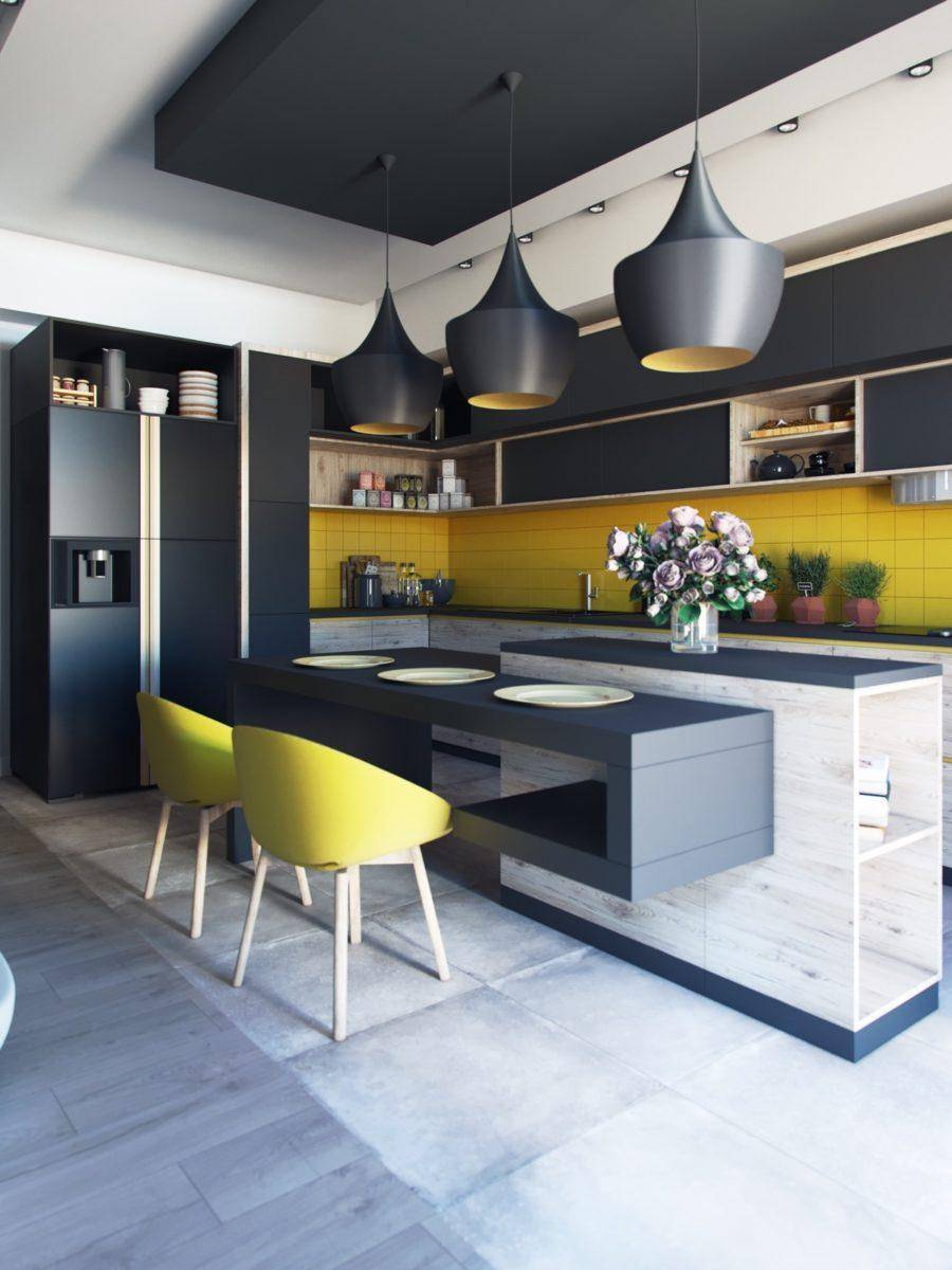 - В независимости от размера кухни, нельзя использовать слишком много матового черного цвета. В любом случае стоит выделять предметы интерьера и делать акценты на деталях. Отличным вариантом является комбинирование с контрастными цветами.