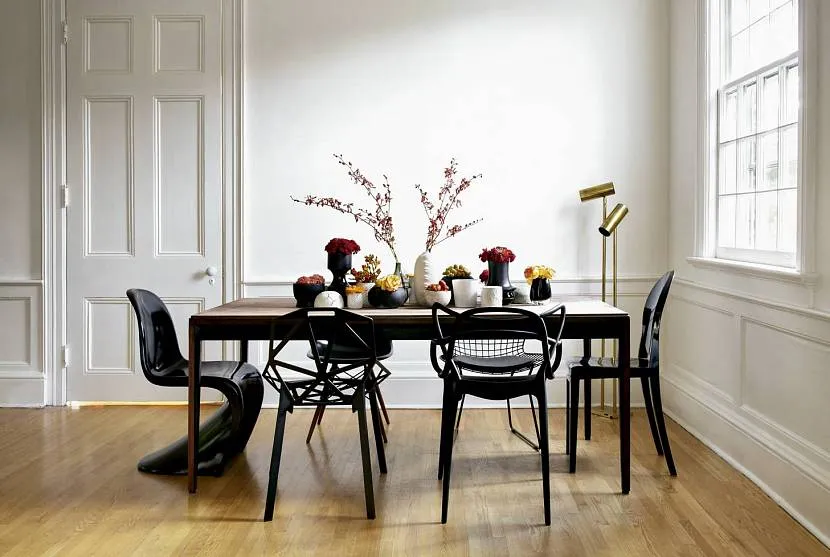 Еще несколько десятилетий назад излюбленной комбинацией была черная мебель в белом интерьере. Сегодня простая черно-белая схема считается пресной, скучной и надоевшей, ее практически перестали использовать даже в минималистических интерьерах.