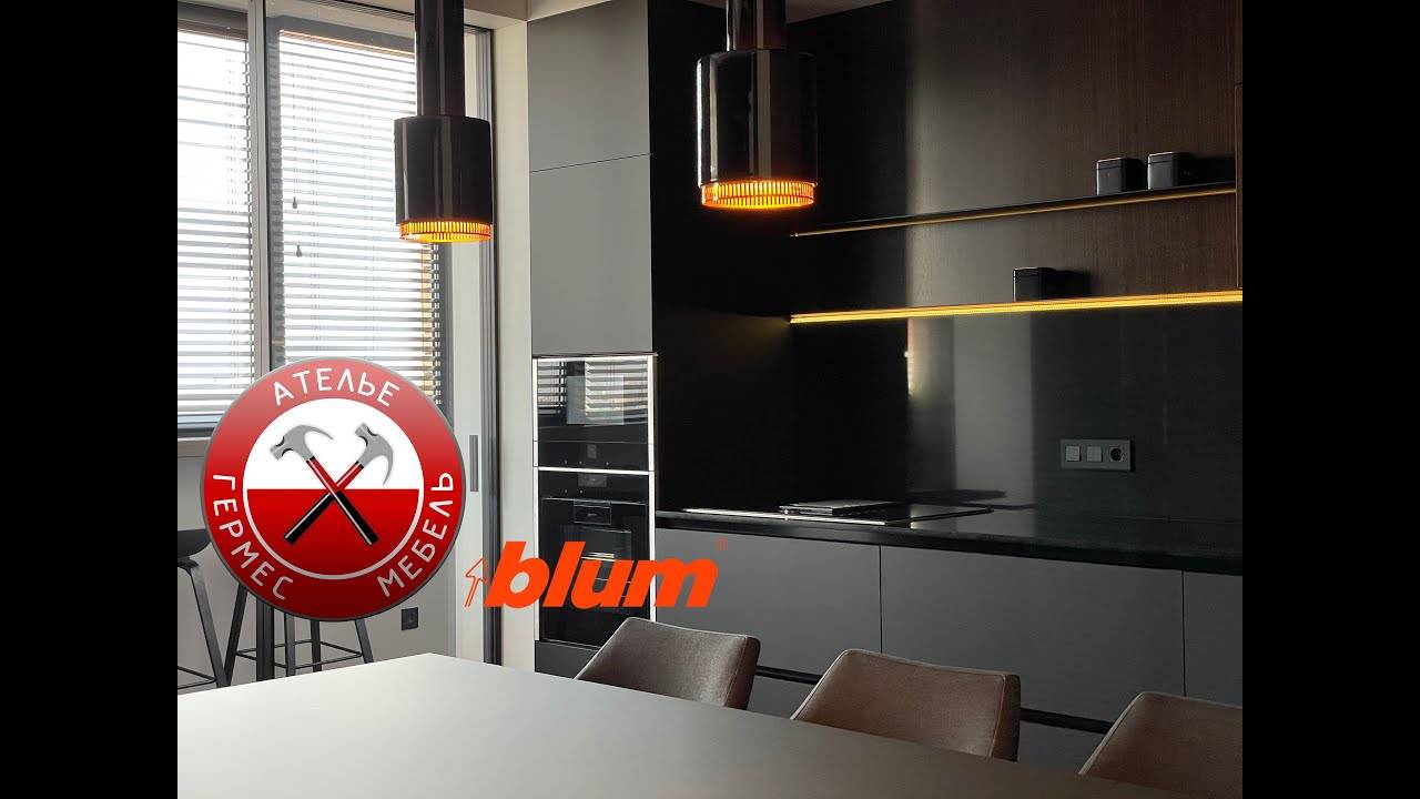 - Черный тон поглощает лучи света, а это указывает на необходимость создания максимально мощного освещения. На этапе планирования кухни желательно заранее продумать схему расположения источников света и подсветки для отдельных зон. Дополнить и усилить восприятие освещения помогут отражающие или стеклянные поверхности, а также металлическая бытовая техника.