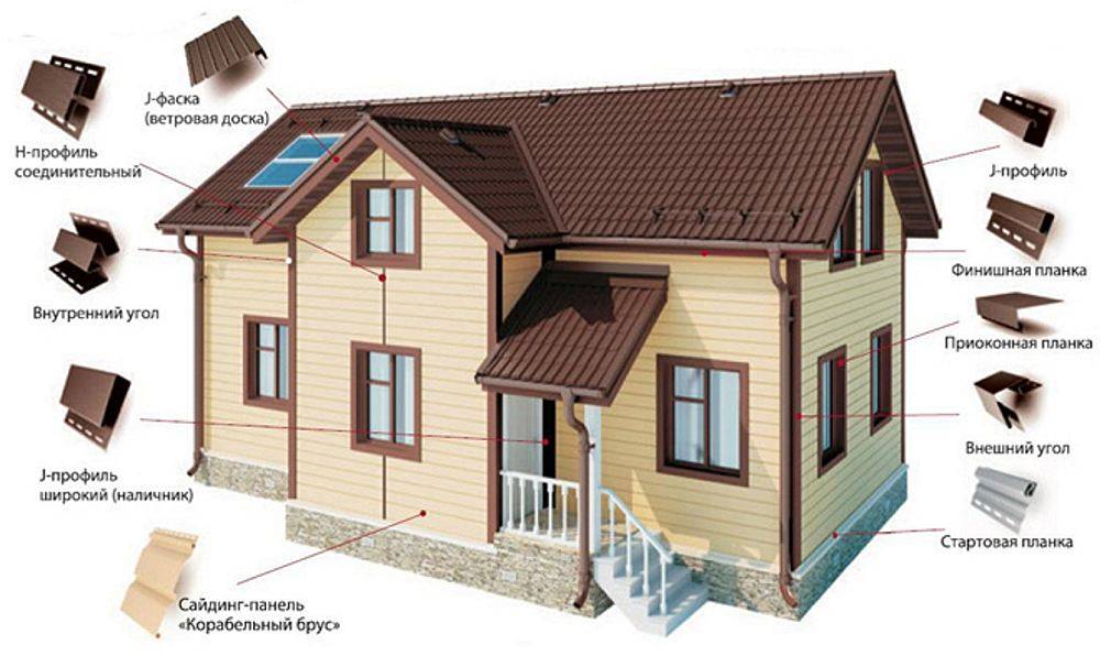 Так, установка сайдинга своими руками на деревянный дом или другое строение ведётся с использованием следующих деталей: