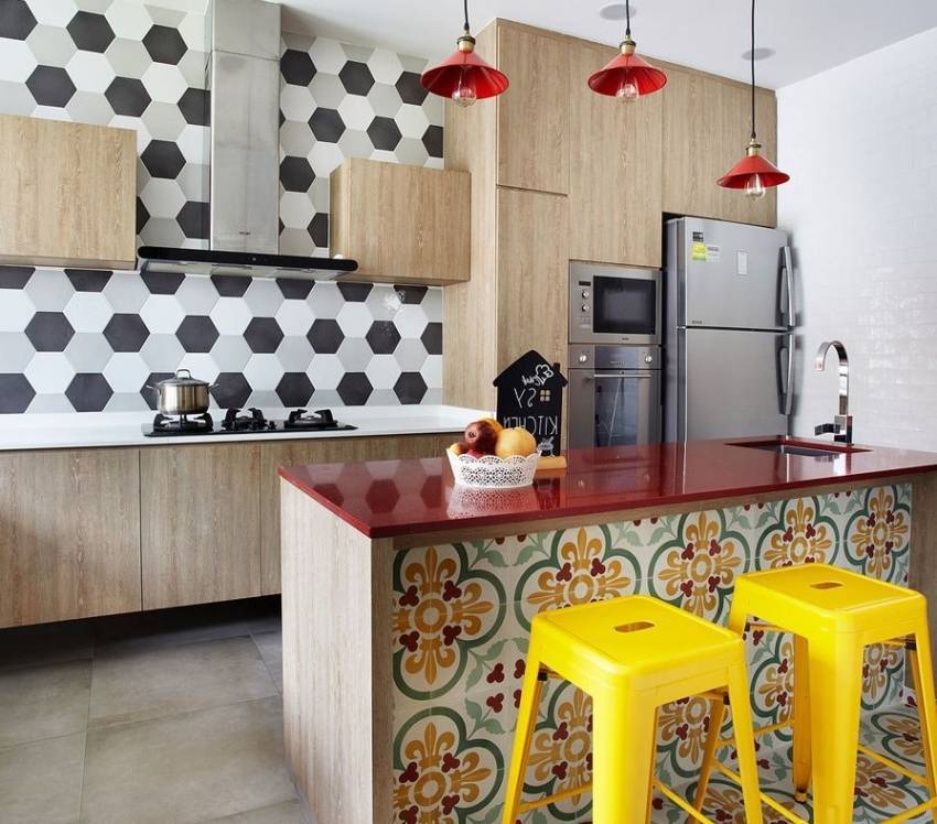 В первую очередь при выборе кафеля нужно определиться со стилем и цветом согласно общему оформлению кухни. Для этого можно воспользоваться несколькими дизайнерскими приёмами: