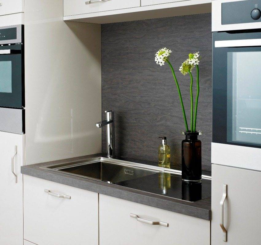 На фото современных интерьеров часто можно увидеть однотонную, идеально ровную поверхность или же с имитацией рисунка камня или дерева. Чаще всего это пластиковые панели, которые отличаются доступной стоимостью, а потому используются в недорогих интерьерах, обеспечивая кухню функциональным фартуком.