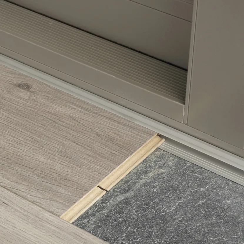 Теперь выпускают окантовочный профиль для разных отделочных материалов. Разница — в наличии или отсутствии компенсаторного зазора, который необходим для обустройства плавающих полов. Деталь монтируют при укладке последнего ряда облицовки, накрывают декоративной планкой.