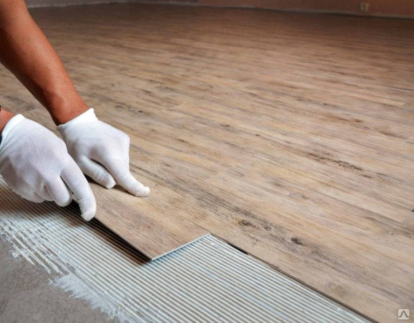 Необходимо правильно дозировать клей и стараться не вымазать напольное покрытие.