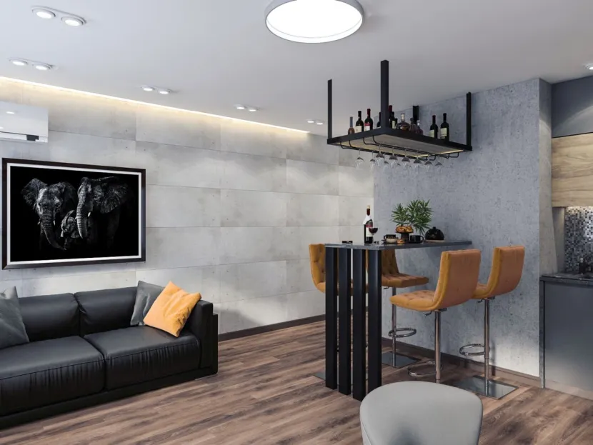 Комната-студия с барной стойкой Источник ns-interior-design.com