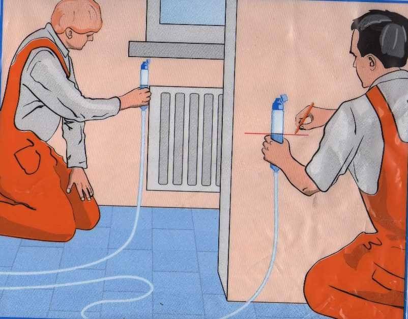 Это можно сделать, двигая трубку вверх и вниз, естественно, без резких движений, осторожно. После того, как уровень воды совпал с меткой на стене, такой же уровень должен установиться и в первом конце шланга, который, как мы помним, находится неподвижно в руках у первого человека из бригады
